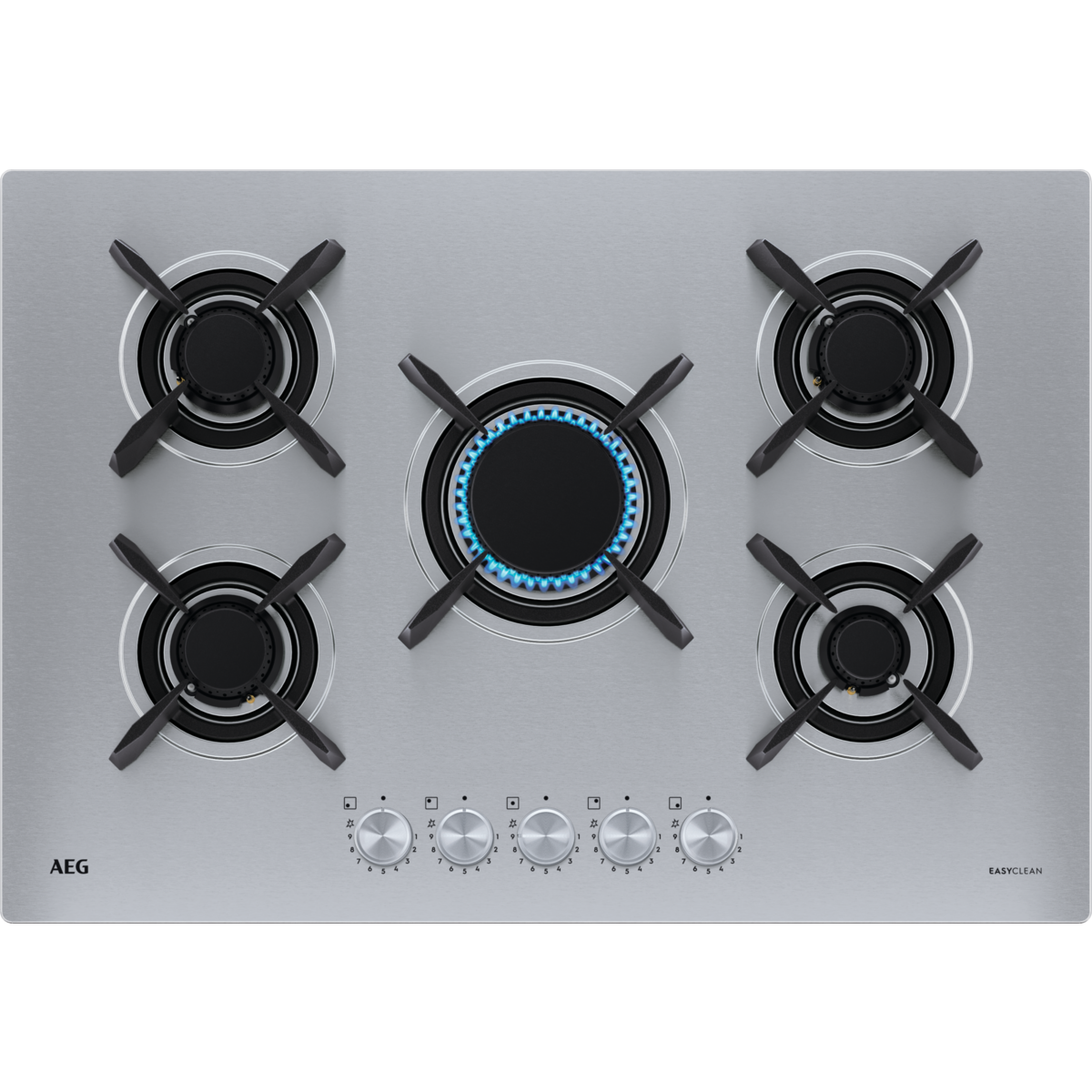 75 cm - Ultraflat line con step power - EasyClean coating - 5 fuochi - Bruciatori VerticalFlame - 1 Wok - Accensione integrata - Sicurezza gas - Griglie singole in ghisa - Profilo 5 mm - Estetica inox - comandi frontali - con bruciatori Matt nero opaco con speciale trattamento EasyClean lavabili in lavastoviglie