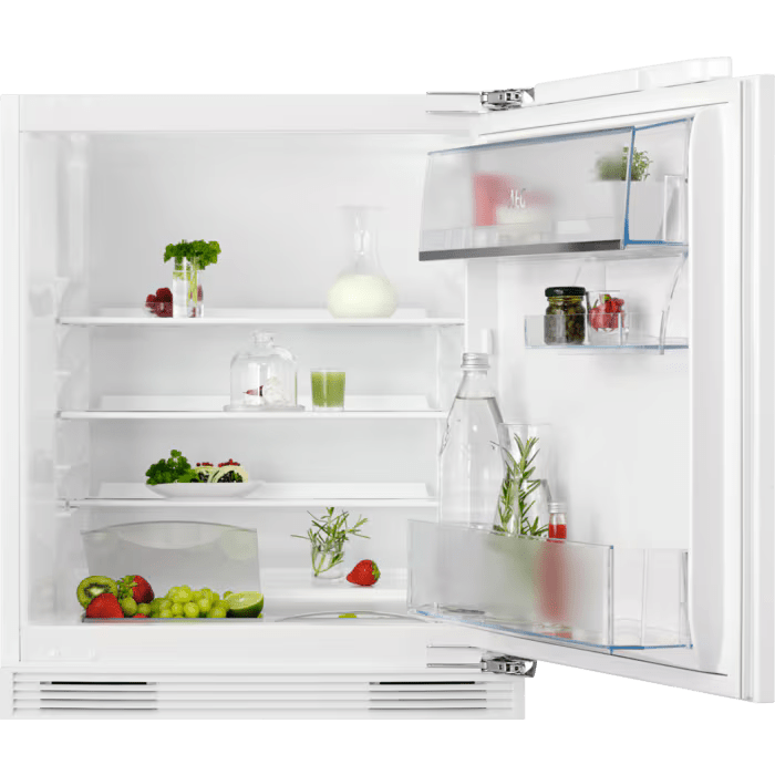 Sottotavolo frigorifero autoventilato - Statico - Classe energetica E - 819 mm - Installazione door on door - Controlli meccanici - Capacit netta frigorifero 134 lt - 1 cassetto frutta e verdura, 4 ripiani in vetro - Porta reversibile - Ruote frontali regolabili - 38 dB(A)
