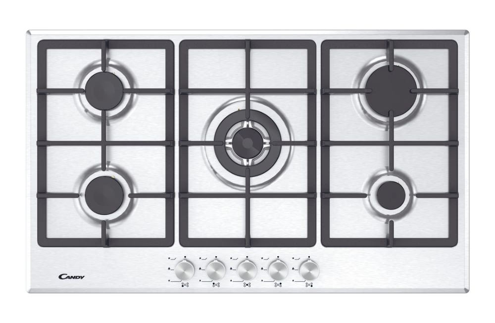 Piano a gas, 90cm, 5 bruciatori, 1 bruciatore DC 3,5kW, potenza totale 10,75kW, griglie in ghisa
