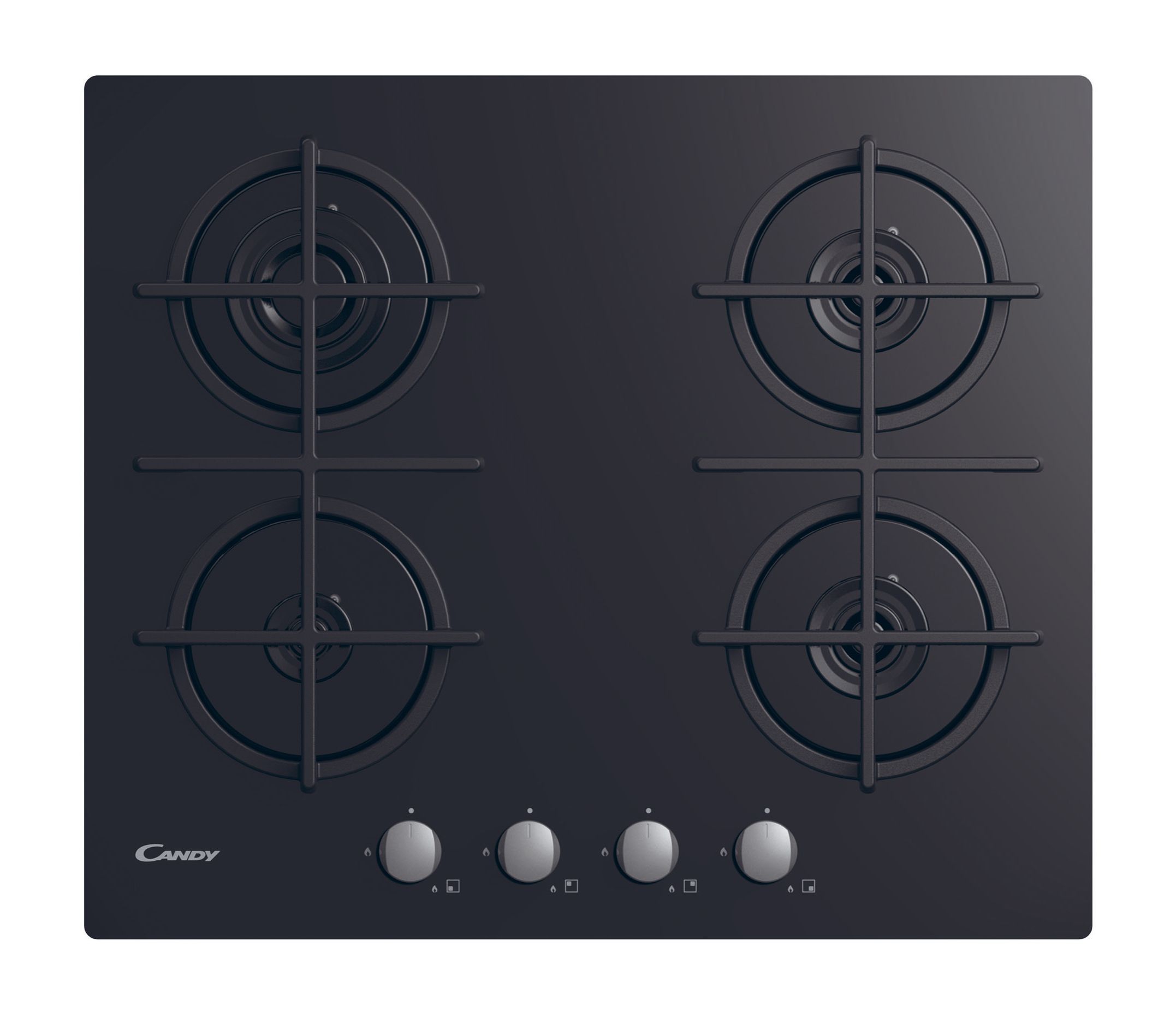 Piano Vetro Nero; da 60 cm; 4 fuochi; Griglie in ghisa