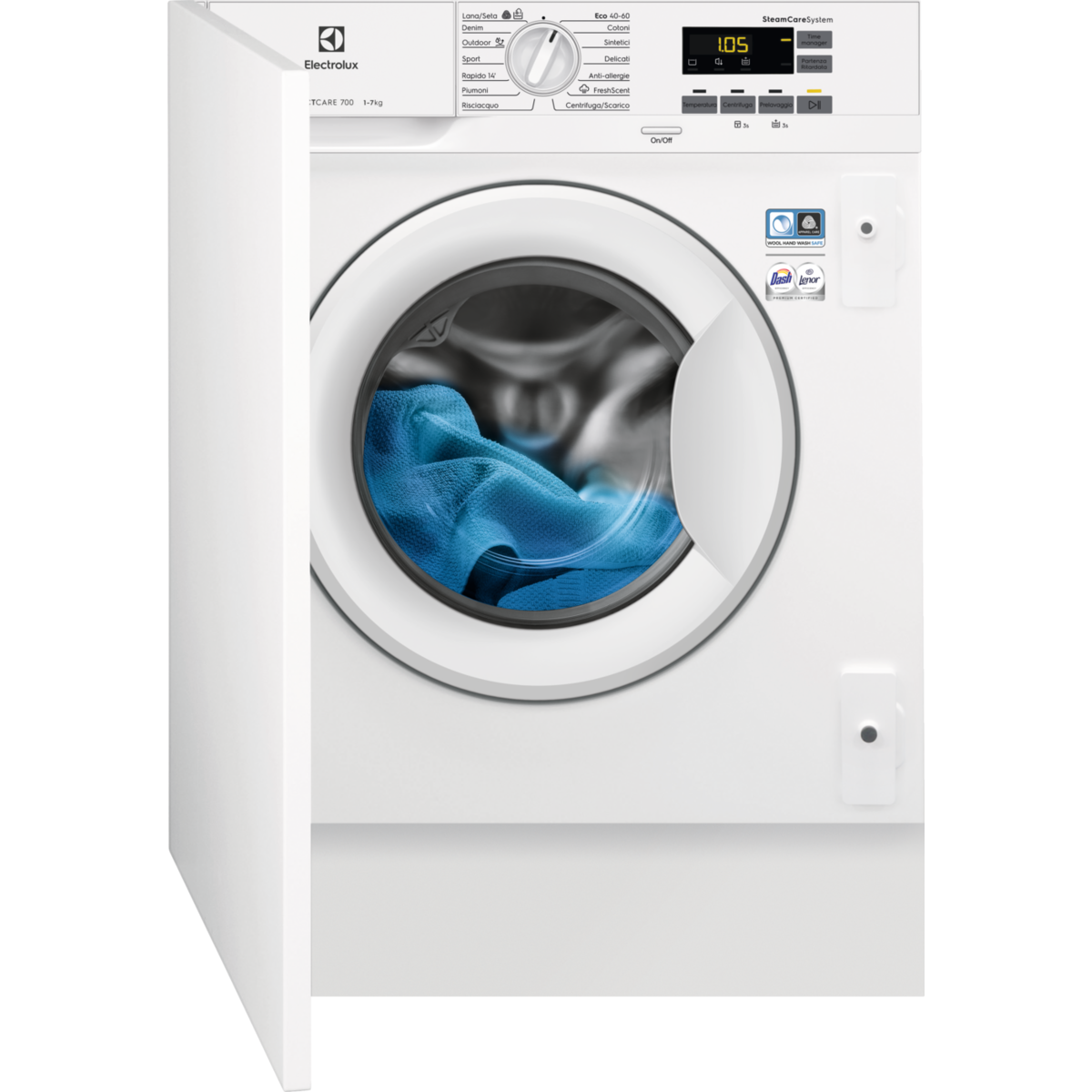 Lavabiancheria a scomparsa totale - Time Manager - Display LCD - Maxi obl - Capacit variabile fino a 7 kg di biancheria asciutta - Regolazione centrifuga: 1200 - 900 - 700 giri/min. - esclusione centrifuga - antipiega - Programmi speciali : lavaggio a mano - seta - lana - lingerie - Opzioni: prelavaggio - extra risciacquo - Partenza ritardata fino a 20 ore - Sicurezze: antitrabocco - antisurriscaldamento - Sistema antispreco detersivo - Sistema antivibrazioni - Vasca in Carboran - Filtro autopulente - Piedini livellatori - Classe di efficienza energetica D - Classe di efficienza di centrifugaB