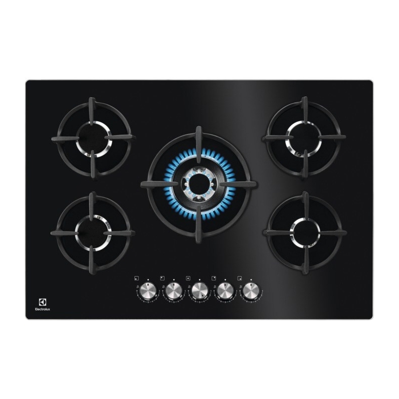75cm - Gas on Glass - STEP POWER - 5 fuochi - 1 Bruciatore Wok multicorona (4Kw) - Bruciatori ad alta efficienza +20% Speed Burner - Griglie in ghisa singole - Estetica nera