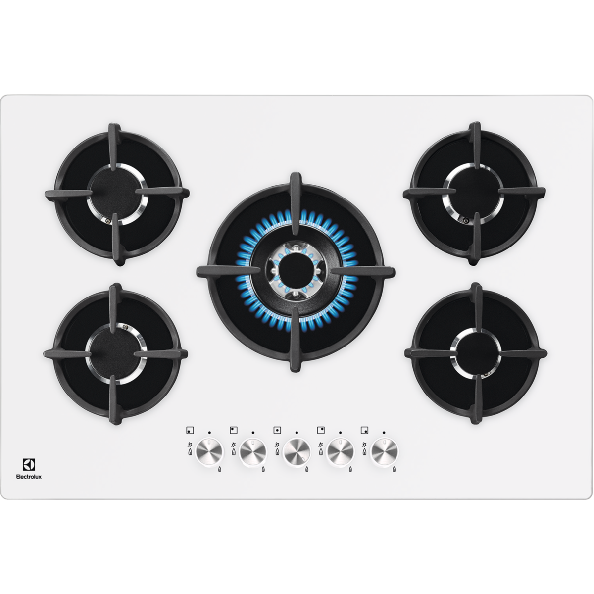 75 cm - Nuova estetica Gas on Glass - 5 fuochi - Bruciatori ad alta efficienza +20% Speed Burner - Bruciatore Wok (4Kw) - Nuova estetica griglie singole in ghisa - Estetica cristallo temprato bianco