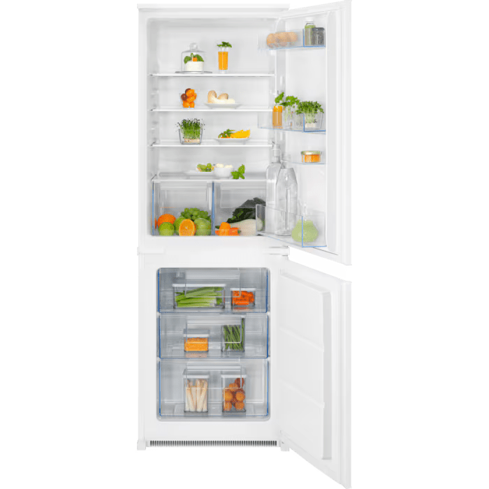 FRIGOCONGELATORE COMBINATO/1572 MM/CLASSE ENERGETICA E/STATIC LOW FROST/COMANDI ELETTRONICI CON LUCE LED/CAP. CONG. 4,5 KG IN 24 H/TEMP. RISALITA 11,5 ORE/FUNZIONE CONGELAMENTO RAPIDO, ALLARME PORTA APERTA/2 CASSETTI PER FRUTTA E VERDURA, 4 RIPIANI IN VETRO/CAP. NET. FRIGO 161 L/CAP. NET. CONG. 72 L/SLIDING DOOR/36 dB(A)/INCERNIERAMENTO A DESTRA/10 ANNI DI GARANZIA SUL COMPRESSORE INVERTER
