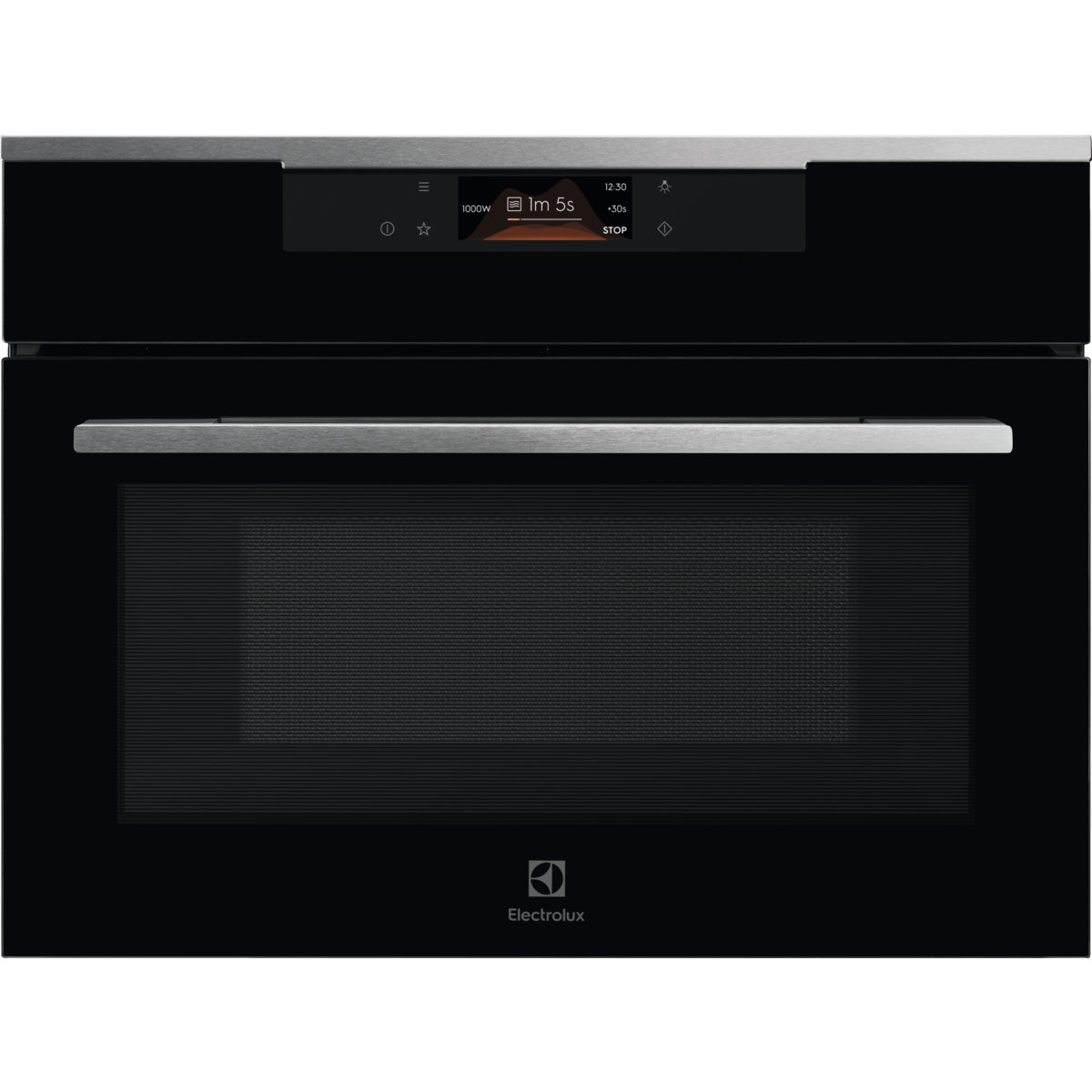 Microonde compatto con grill; Piatto rotante in vetro e griglia rotonda removibile; Cottura a microonde e grill; Volume 42 litri; Programmatore elettronico Touch Control; con display TFT; Potenza microonde 1000 W; Potenza grill 1200 W; CoolDoor Xtra (4 vetri termoriflettenti); Cavit smaltata; Luce alogena; Sicurezza bambini; Estetica inox; nuova UI EXCite