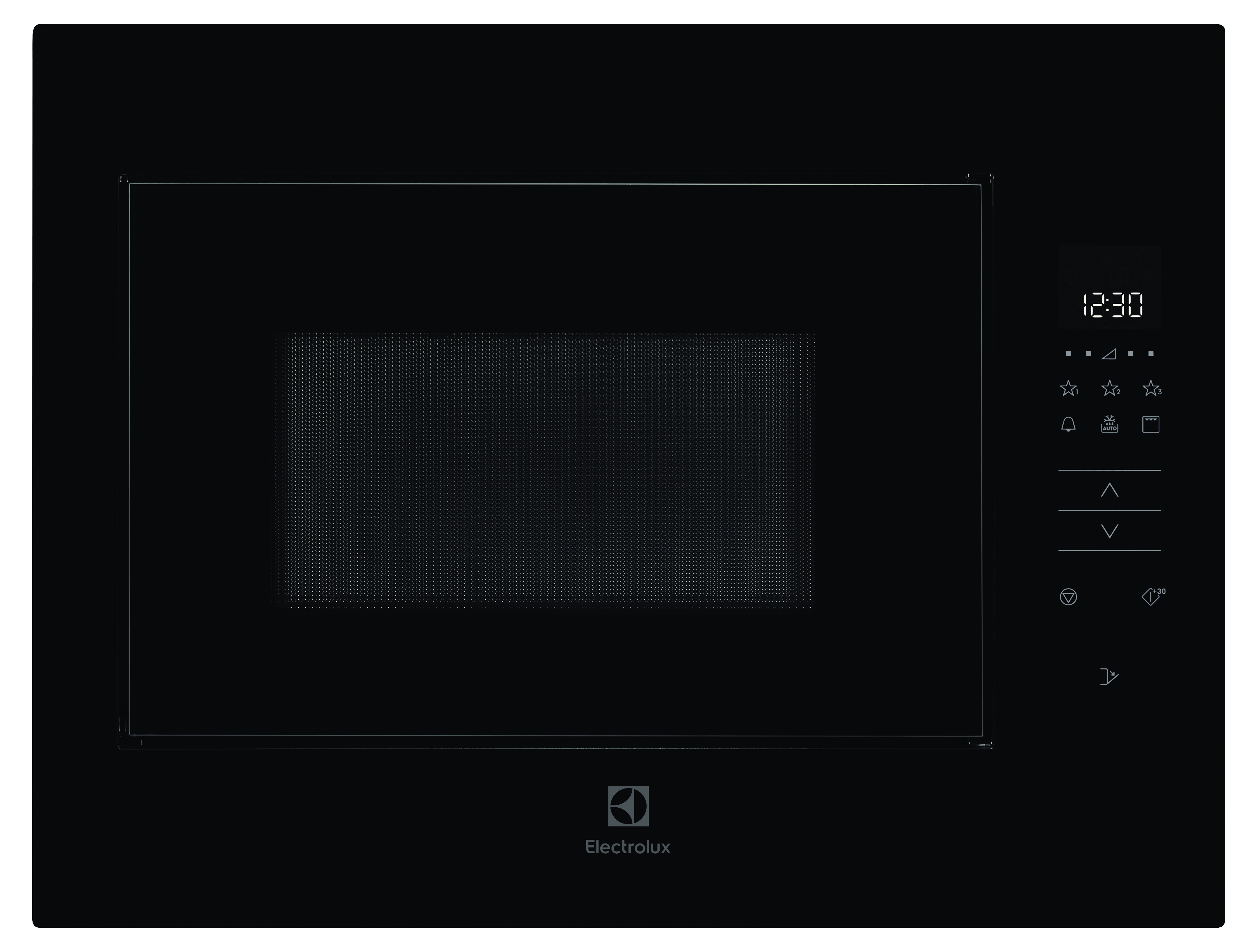 Microonde con grill - Quadro - Vano incasso 45 cm - Volume 26 litri - Cottura a microonde, cottura con grill e cottura combinata - 8 programmi di cottura preimpostati - 7 programmi di scongelamento preimpostati - Quick Start - Programmatore elettronico con display digitale - Potenza microonde 900 W - Regolazione potenza microonde a 5 livelli - Potenza grill 800 W - Segnalatore acustico di fine cottura - Sicurezza apertura porta - Sicurezza bambini - Piatto girevole ( 32 cm) - 2 griglie - Incernieramento porta a sinistra - Estetica nera