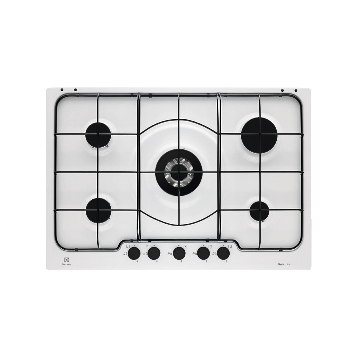 75 cm Soft - 5 fuochi gas - Bruciatori Fiamma Pura - 1 bruciatore Wok - Griglie speciali in estetica nera - Accensione integrata nella manopola - Sicurezza Sicurgas - Estetica bianca
