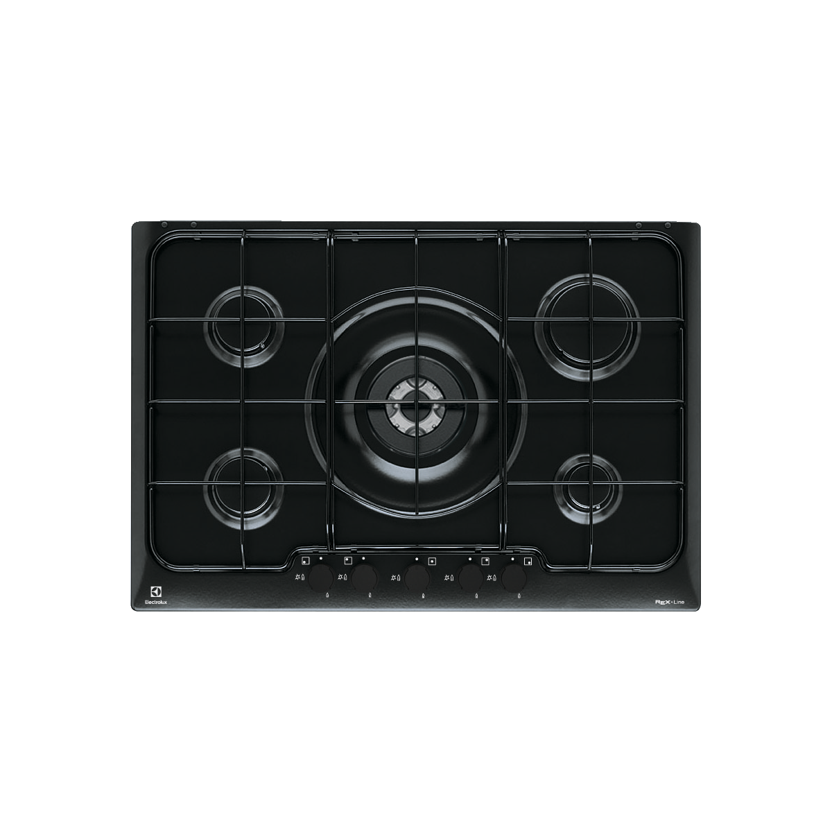 75 cm Soft - 5 fuochi gas - Bruciatori Fiamma Pura - 1 bruciatore Wok - Griglie speciali in estetica nera - Accensione integrata nella manopola - Sicurezza Sicurgas - Estetica nera