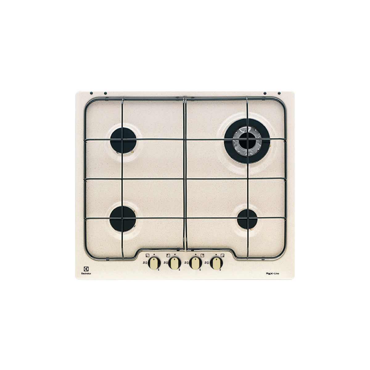 60 cm Rustico Soft - 4 fuochi gas - Bruciatori Fiamma Pura - 1 bruciatore tripla corona - Griglie speciali in estetica nera - Accensione integrata nella manopola - Sicurezza Sicurgas - Estetica sabbia /manopole finitura bronzo