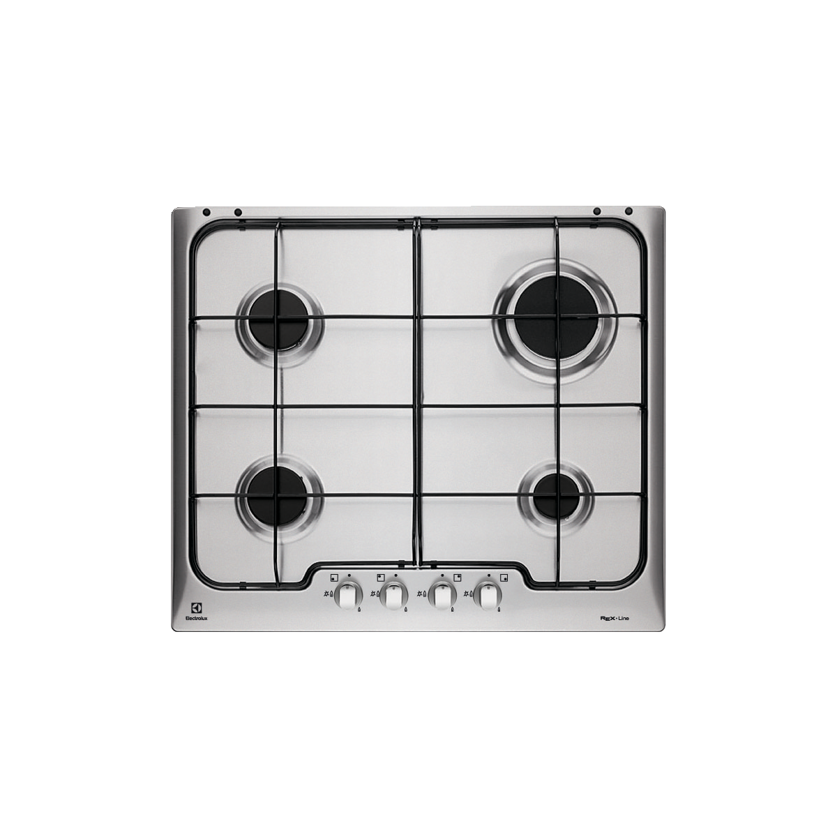 60 cm Soft - 4 fuochi gas - Bruciatori Fiamma Pura - Griglie speciali in estetica nera - Accensione integrata nella manopola - Sicurezza Sicurgas - Estetica inox - Nuove manopole finitura inox