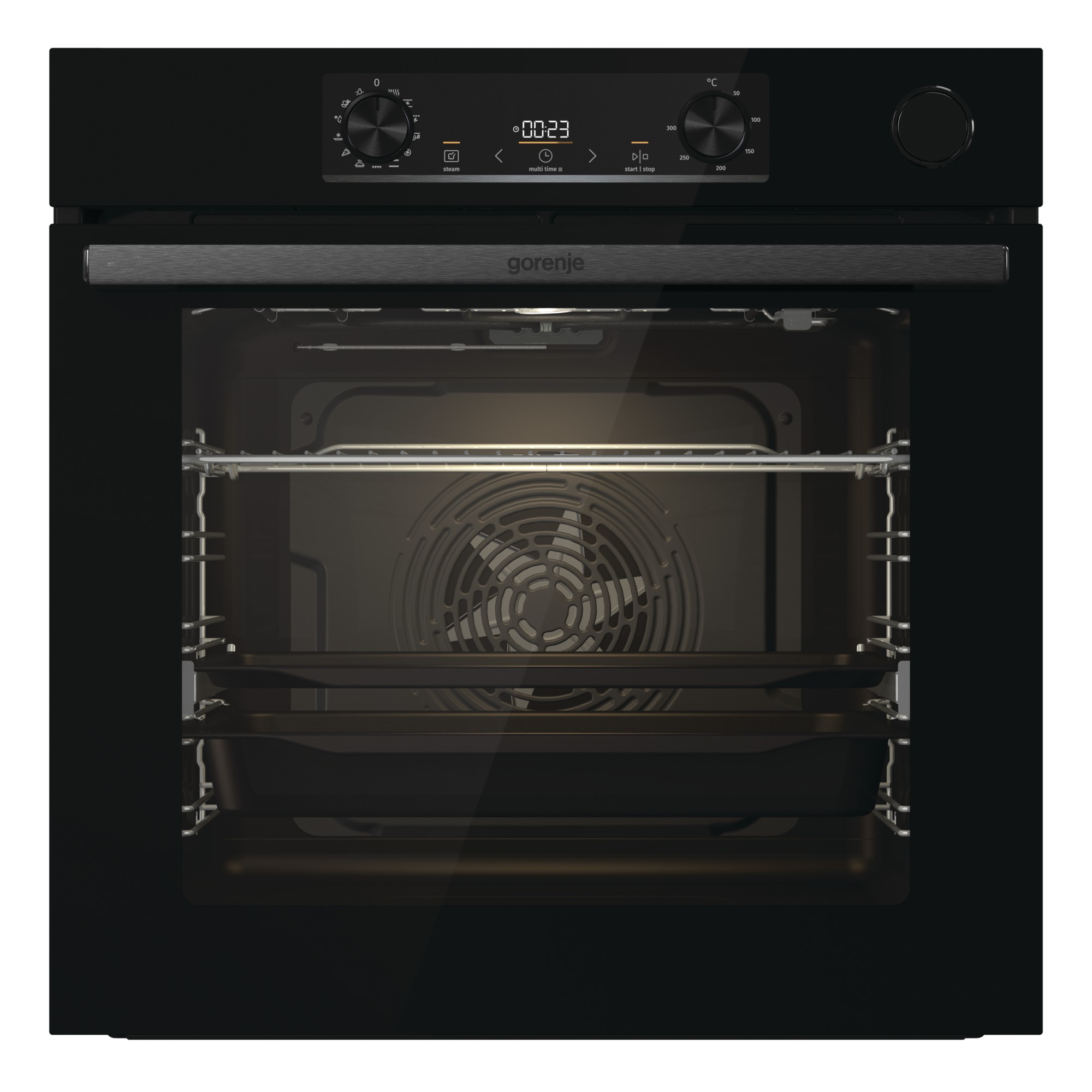 Forno combinato vapore Steam Assist, 77 l, Display LED con manopole Push Pull e comandi touch, Step Bake, 13 funzioni con funzione Pizza 300 e Air Fry, Steam Clean, Riscaldamento Rapido, Chiusura porta rallentata, e guide telescopiche Estetica Vetro Nero