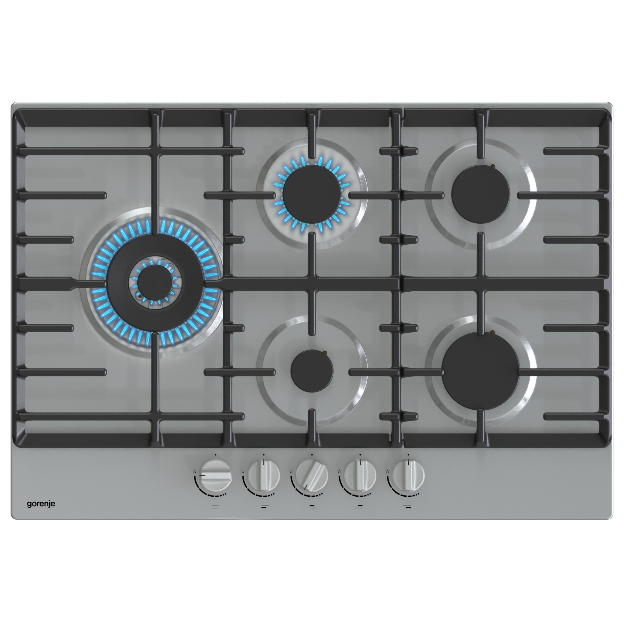 Piano a Gas 75 cm con comandi frontali 5 zone in acciaio inox, griglie in Ghisa e bruciatore Side Wok