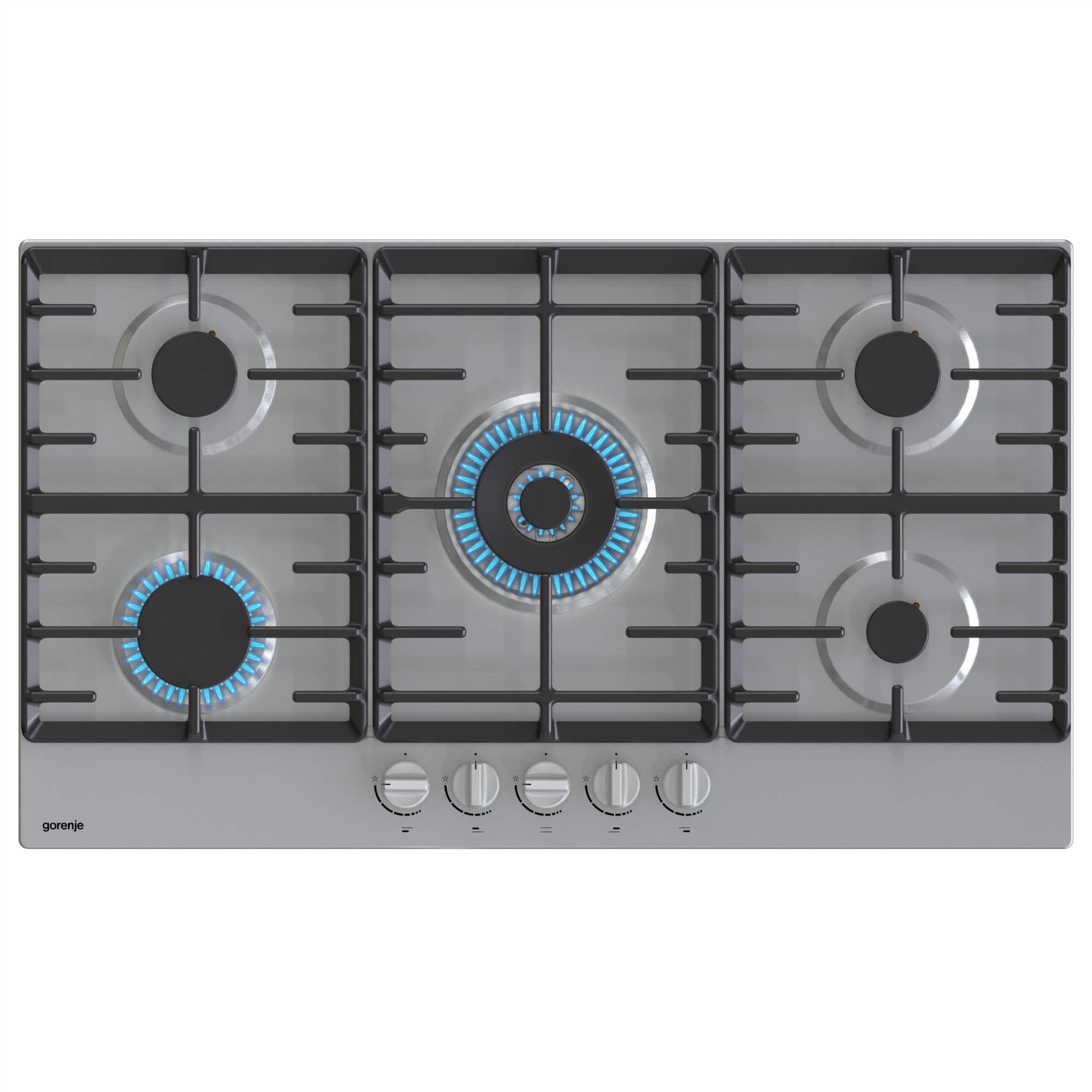 Piano a Gas 75 cm con comandi frontali 5 zone in acciaio inox, griglie in Ghisa e bruciatore Wok Centrale