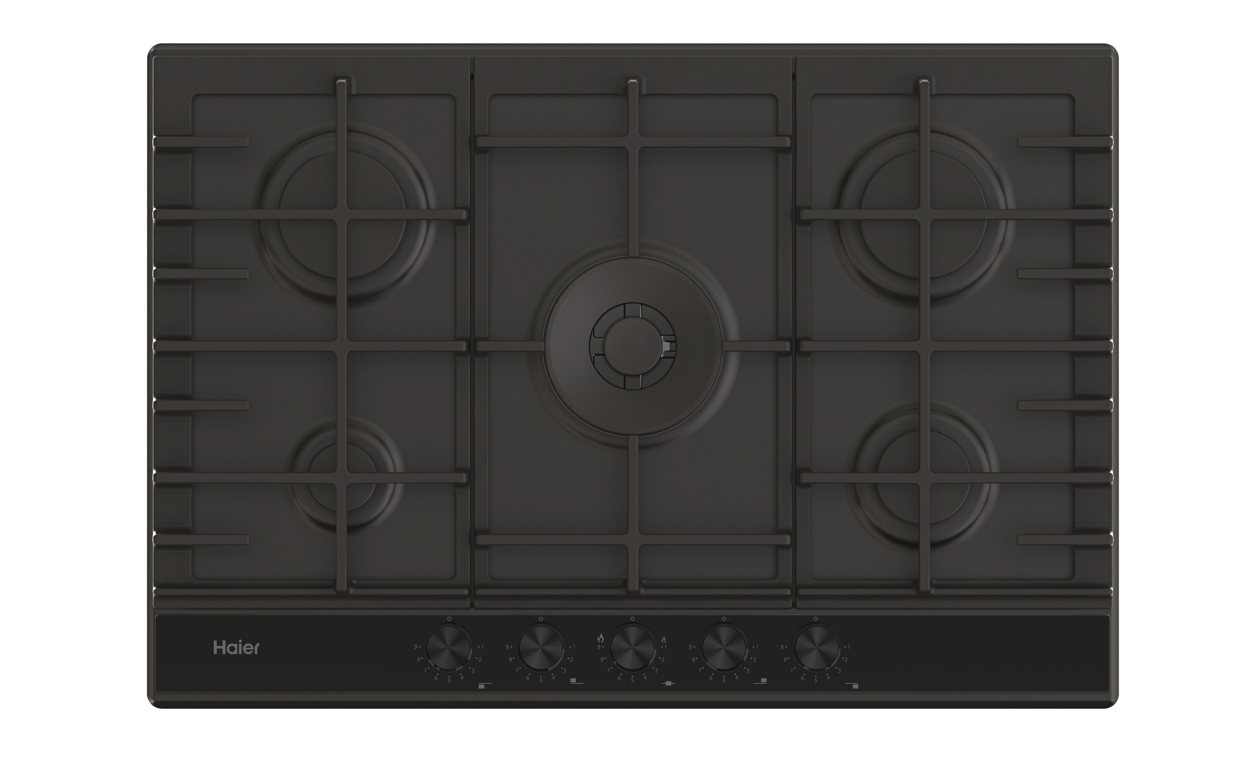 Piano cottura a gas in Acciaio Nero 75cm 5 bruciatori 1 doppia corona da 5 kW griglie in ghisa lavabili Preciflame Alimentazione GPLPotenza totale12,2 kW