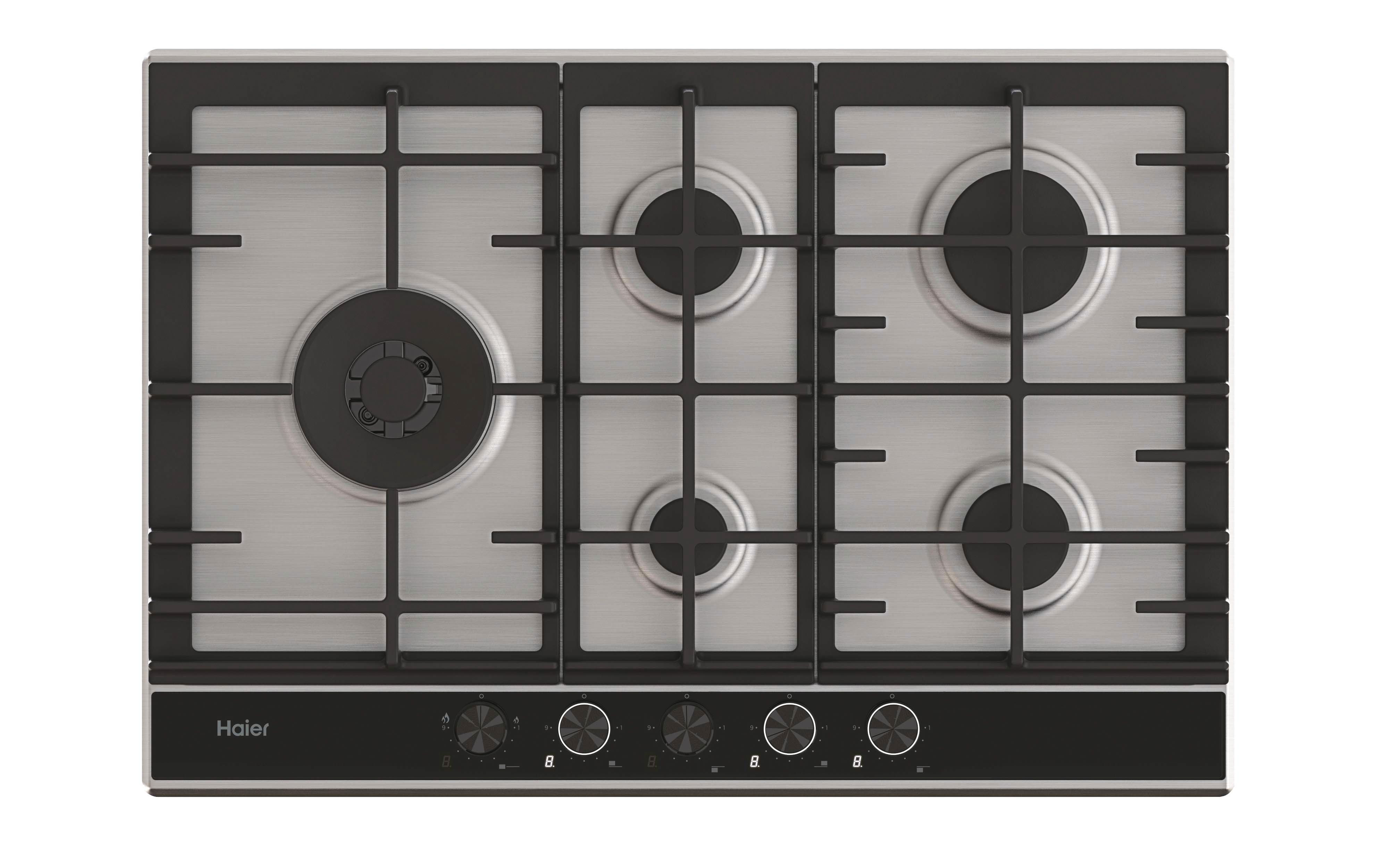 Piano cottura a gas in Acciaio; 75cm; 5 bruciatori; 1 doppia corona da 4kW ; Preciflame; Alimentazione GPL; Potenza totale:12,2 kW; MANOPOLE LED