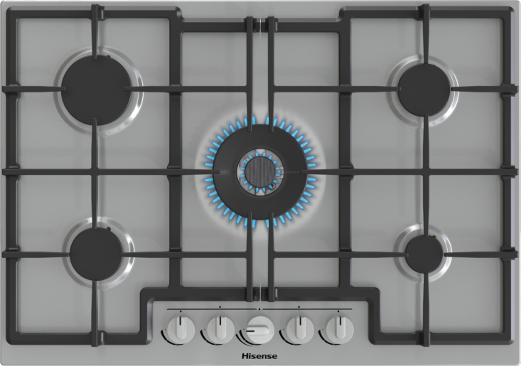 Piano a Gas 75cm inox, 5 zone, bruciatore Wok, griglie in Ghisa, fit nicchia da 48cm