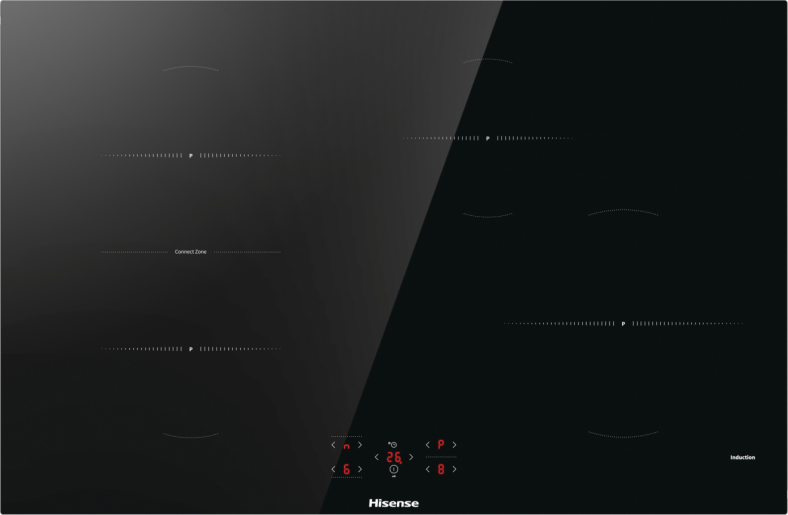 Piano induzione 80cm, 4 zone, comandi indipendenti 1 zone Connect Zone, timer, power management, scioglimento lento 42, mantieni in caldo 70