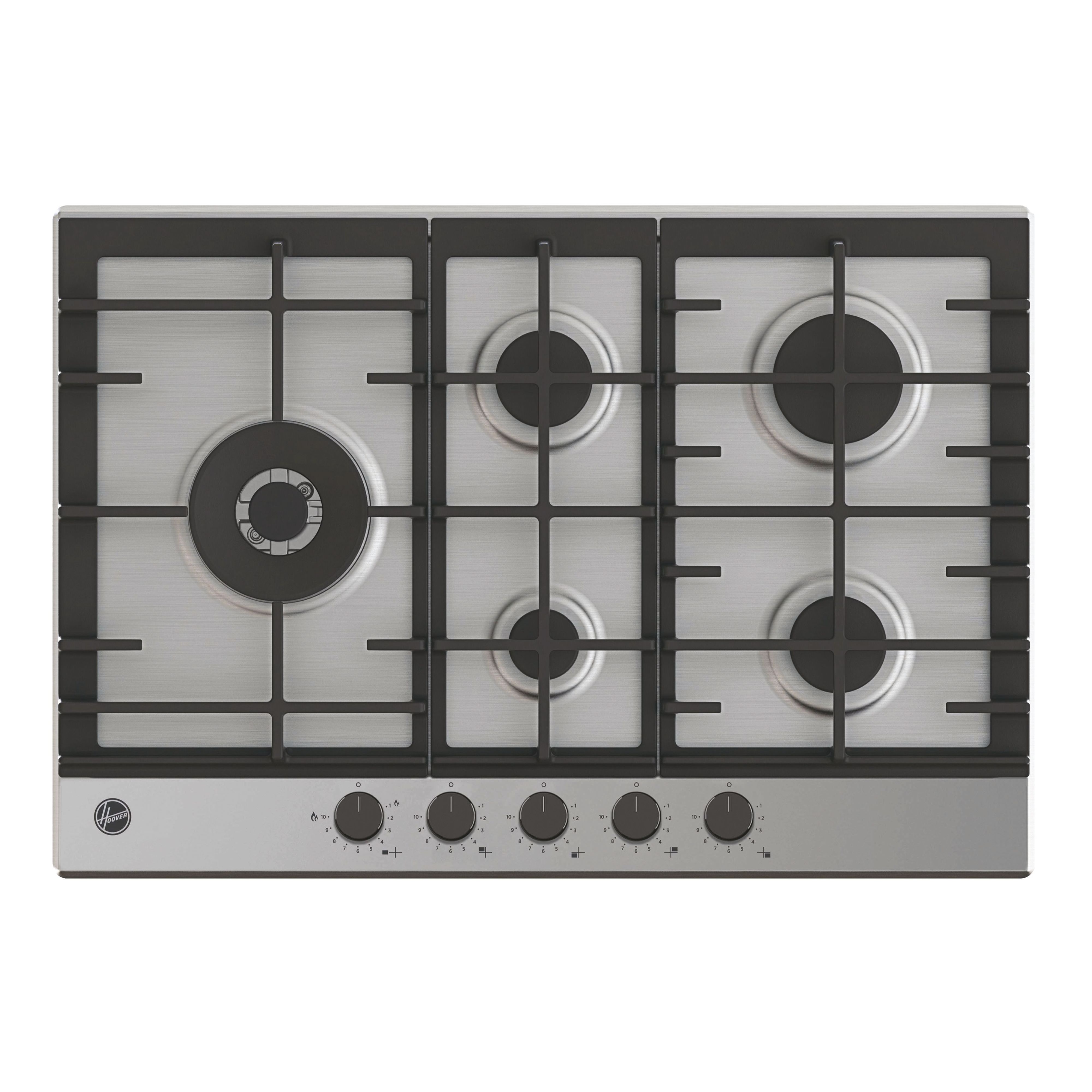Piano GOG; 5 bruciatori; 1 bruciatore doppia corona laterale 5Kw; potenza totale 12,2 Kw; Griglie in ghisa; manopole Inox+nero;;;;;;;;;;