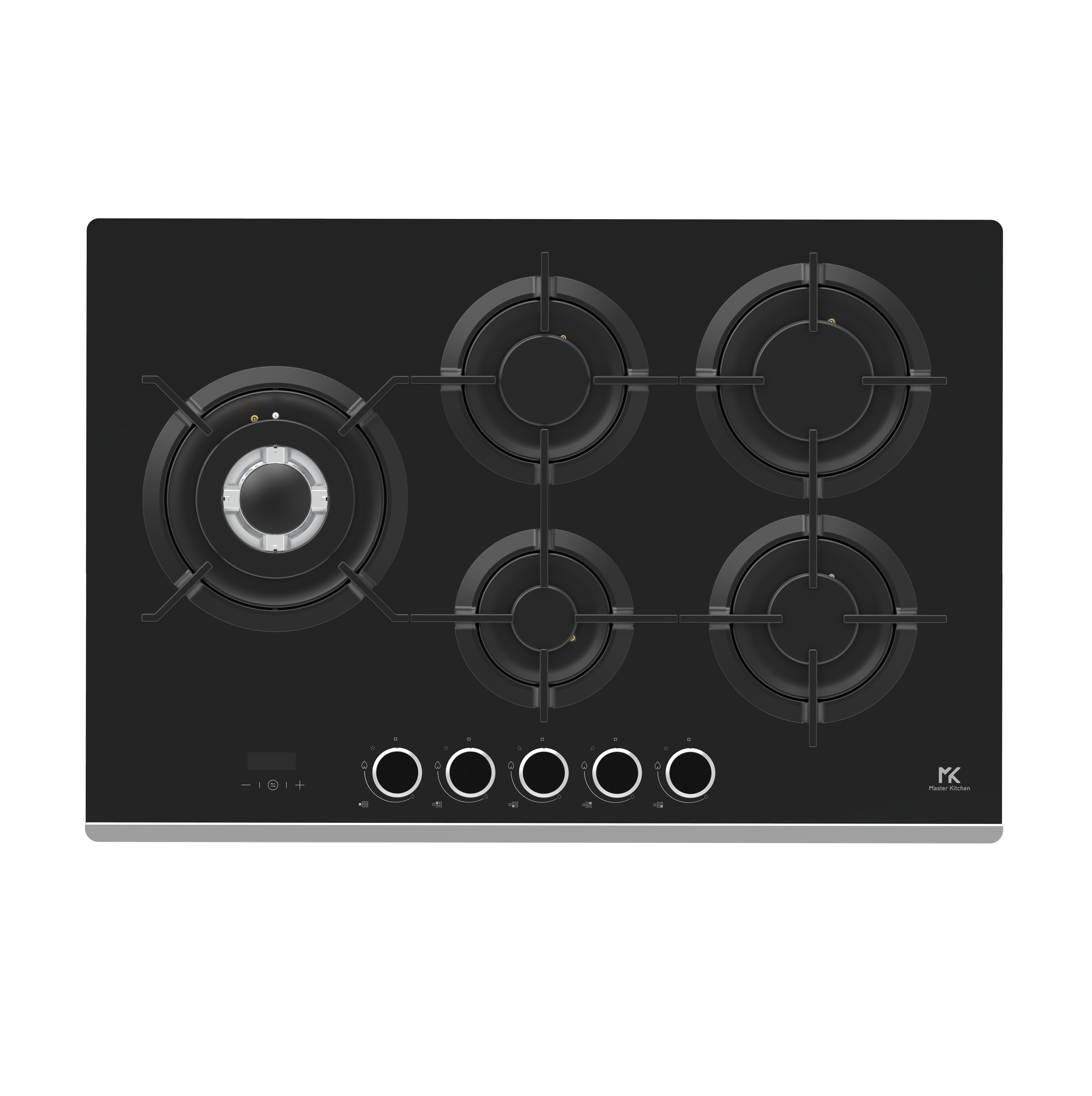 Piano gas 75 vetro nero tripla corona laterale ghisa con timer