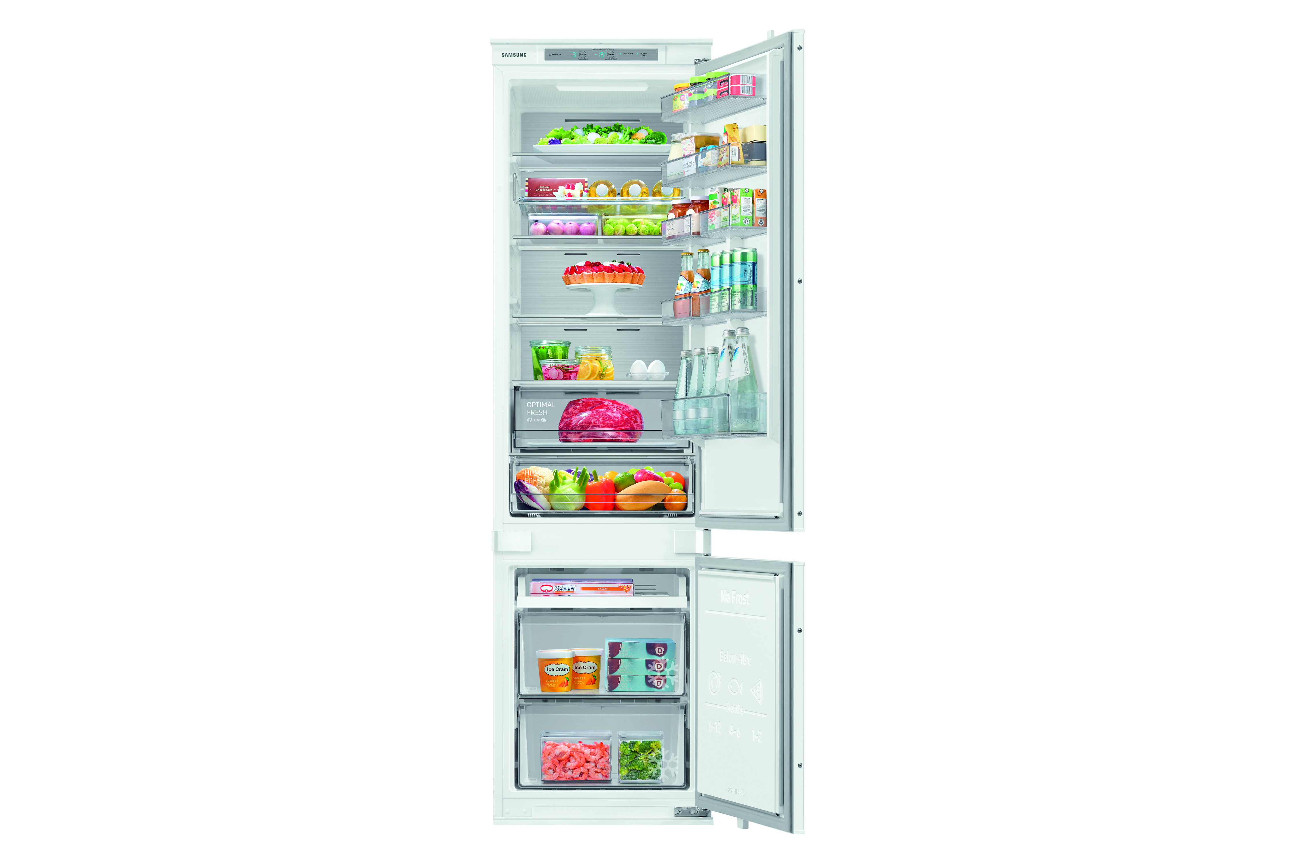 SERIE FIRST PLUS, Total No Frost, H193, Digital Inverter, Classe E (New), Capacit Totale 297 Lt (223+74), Display Digitale Interno, Cerniera a Traino, Twin Cooling Plus, Cool Select Plus, Power Cool/Freeze, Cassetto Humidity Fresh+, Cassetto Optimal Fresh+, Rivestimento Interno in Acciaio, Porte reversibili, Apertura a filo, Dimensioni (LxAxP) in cm 54x193,5x55